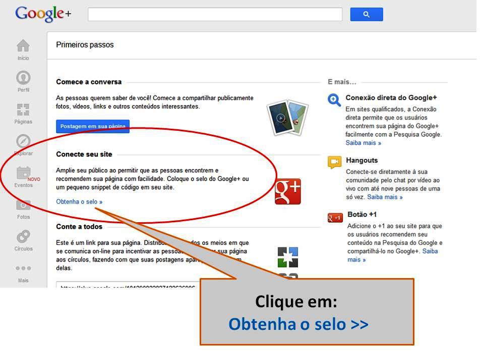 Vá na sua página no Google plus (na página e não no perfil ok), clique no link abaixo da foto “Primeiros passos”, em seguida abrirá a página com alguns plugins …